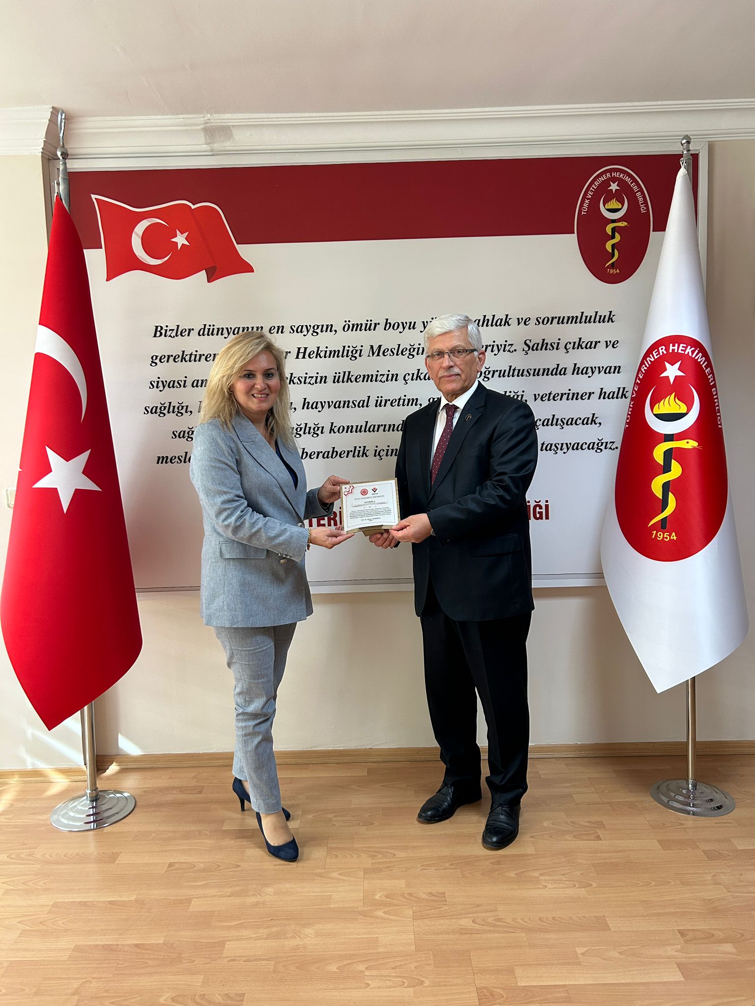 Sivas Cumhuriyet Üniversitesi Veteriner Fakültesi Biyokimya Ana Bilim Dalı tarafından 04-07 Eylül 2025 tarihleri arasında düzenlenen “4. Uluslararası Veteriner Biyokimya ve Klinik Biyokimya Kongresi” dolayısıyla TVHB Merkez Konseyi Başkanı Ali EROĞLU’na, Sayın Prof. Dr. ERCAN tarafından plaket takdim edildi.
