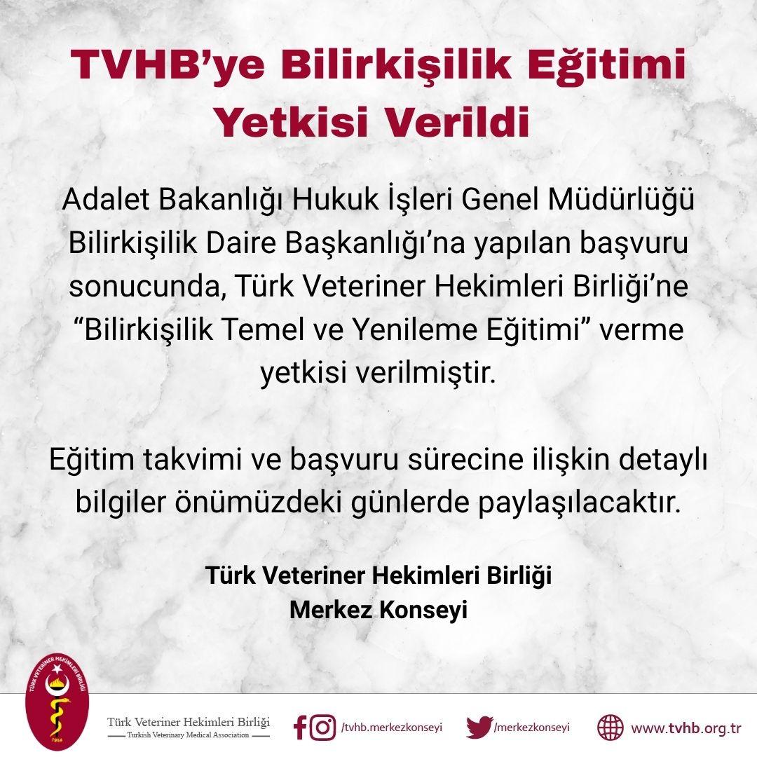 Adalet Bakanlığı Hukuk İşleri Genel Müdürlüğü Bilirkişilik Daire Başkanlığı’na yapılan başvuru sonucunda, Türk Veteriner Hekimleri Birliği’ne “Bilirkişilik Temel ve Yenileme Eğitimi” verme yetkisi verilmiştir.