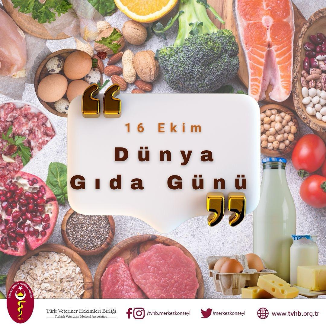 Türk Veteriner Hekimleri Birliği olarak herkesin sağlıklı, yeterli ve güvenli gıdaya eriştiği, kimsenin geride bırakılmadığı, daha iyi gıdalar ve daha iyi bir gelecek için el ele verilecek bir dünyanın mümkün olduğuna inanıyoruz. Bu inançla, çiftçilerimizin, üreticilerimizin, veteriner hekimlerimizin ve milletimizin 16 Ekim Dünya Gıda Günü’nü kutluyor, açlığın ve yetersiz beslenmenin gündemden tamamen çıktığı bir gelecek için dayanışma çağrımızı yineliyoruz.