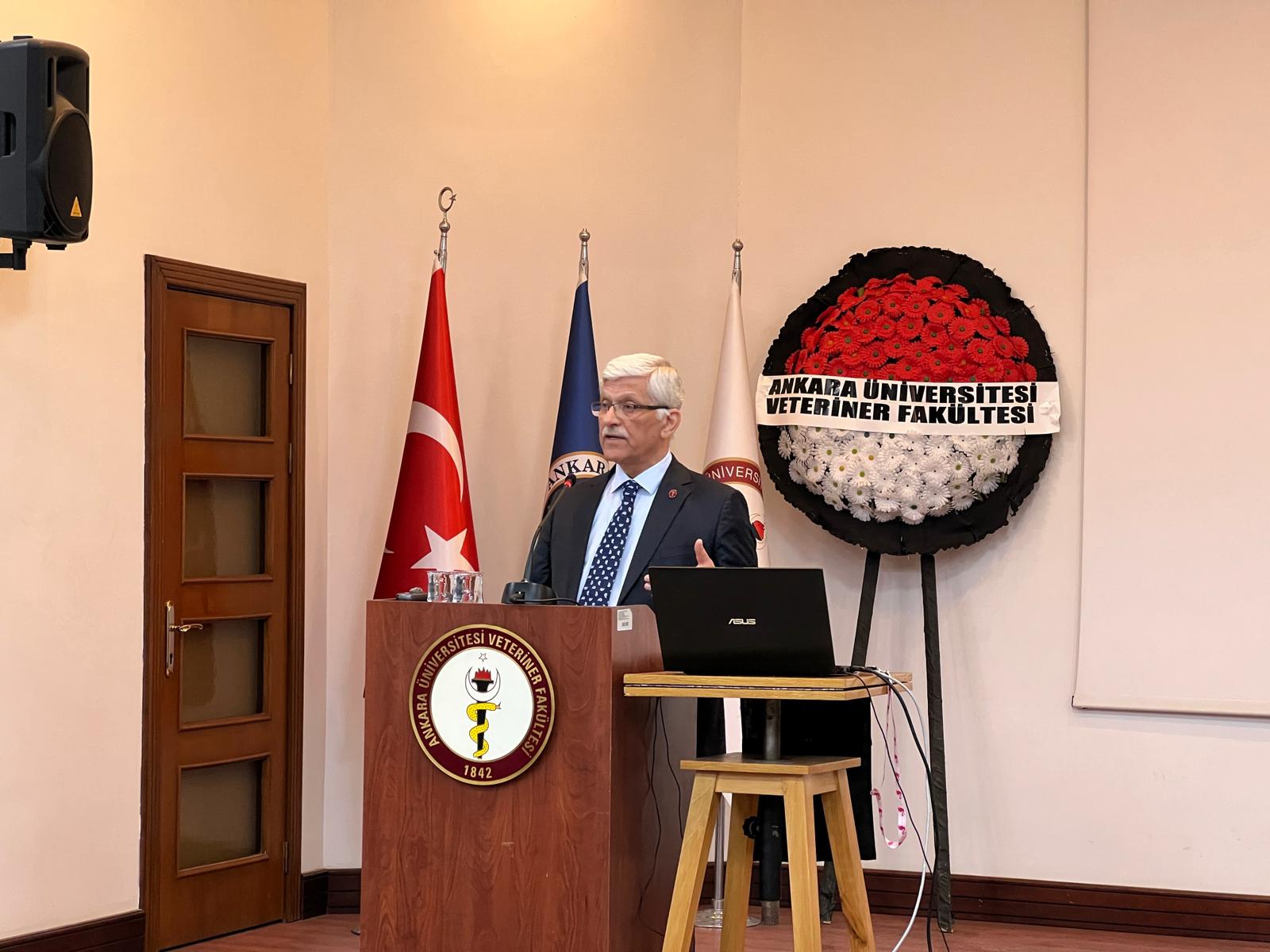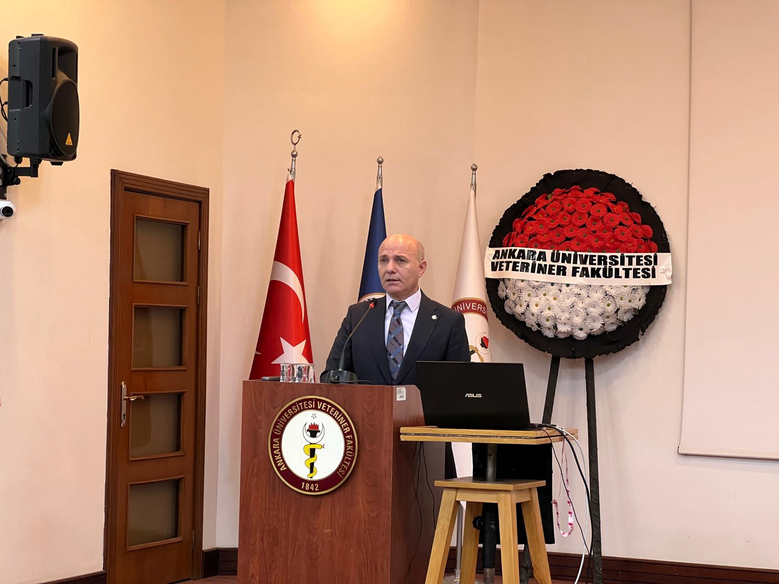 Programın sonunda EROĞLU, Ankara Üniversitesi Veteriner Fakültesi Dekanına, Dekan Yardımcılarına ve emeği geçen, katkı sunanlara teşekkür etti. Ebediyete irtihal eden meslek büyüklerimizi de rahmet ve saygıyla andı.
