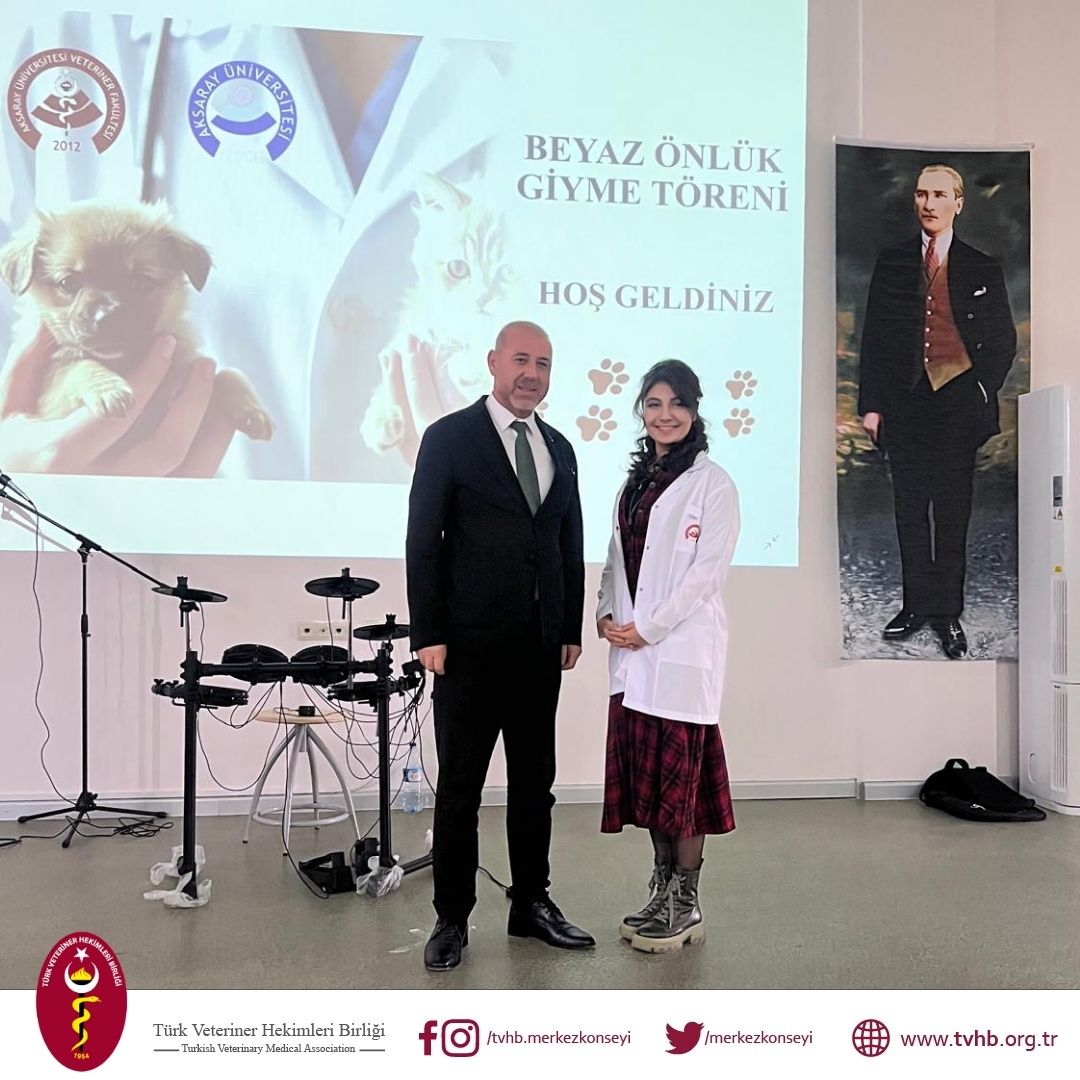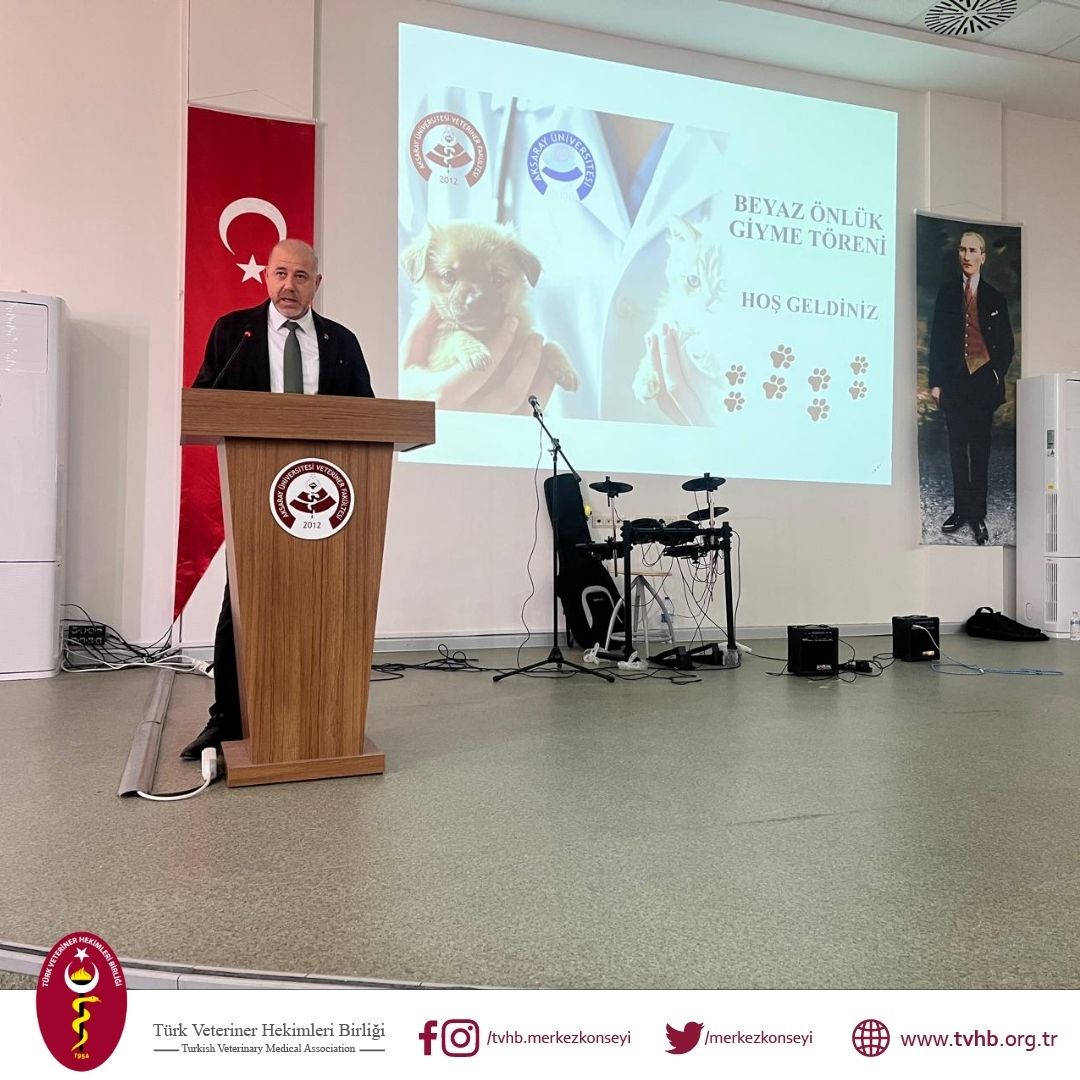 TVHB Merkez Konseyi Üyesi Önder YILDIZ, Aksaray Veteriner Fakültesi’nin Beyaz Önlük Giydirme Töreni’ne katılarak, mesleğe ilk adımlarını atan öğrencilere seslendi. YILDIZ, konuşmasında veteriner hekimliğin toplum ve canlı sağlığı açısından taşıdığı öneme dikkat çekti ve öğrencileri, eğitim süreçlerinde dayanışmayı sürdürmeye, sürekli çalışmaya ve mesleki etik kurallara bağlı kalmaya teşvik etti.