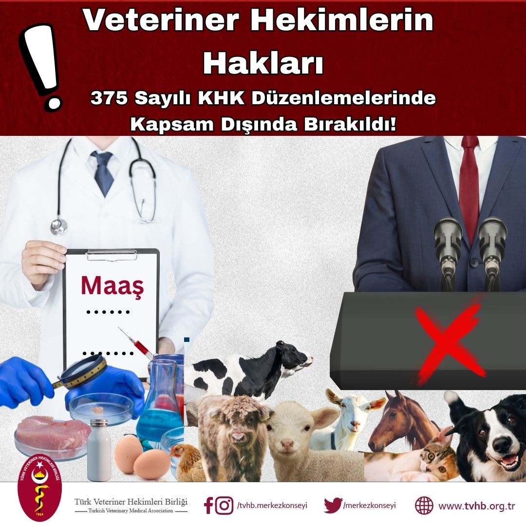 Türk Veteriner Hekimleri Birliği olarak, meslek grupları arasında bu iyileştirmelerde kapsam dışında tutulan veteriner hekimlerimiz adına kamuoyunu bilgilendirme gereği duyulmuştur.