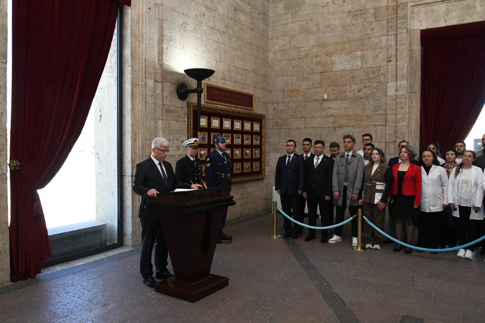 Türk Veteriner Hekimleri Birliği Merkez Konseyi Başkanı Ali Eroğlu, Anıtkabir Özel Defteri’ne kaleme aldığı mesajında; veteriner hekimliğin toplum sağlığının, gıda güvenliğinin ve tüm canlı yaşamının teminatı olduğuna vurgu yapmış; meslektaşlarımızın her koşulda, büyük bir özveriyle görevlerini sürdüreceklerini ifade etmiştir.