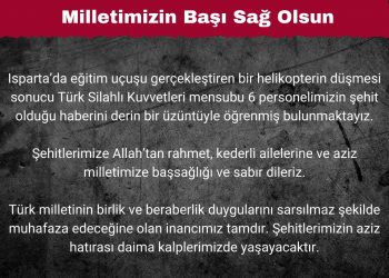 Devamını OkuIsparta’da eğitim uçuşu gerçekleştiren bir helikopterin düşmesi sonucu Türk Silahlı Kuvvetleri mensubu 6 personelimizin şehit olduğu haberini derin bir üzüntüyle...